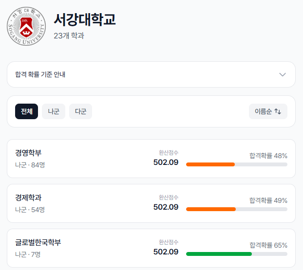 한국공학대학교※ 의약학 계열 분석은 제외됩니다